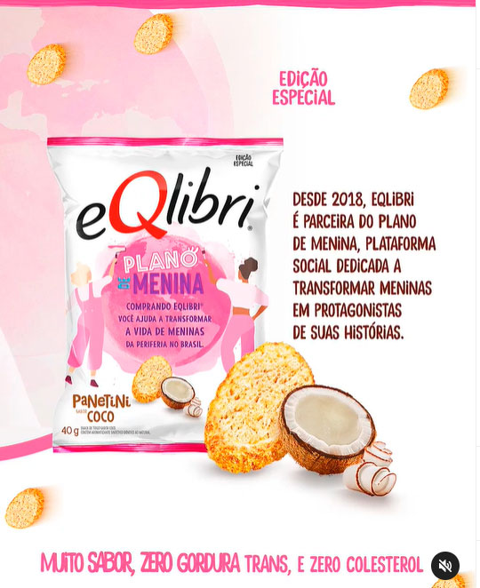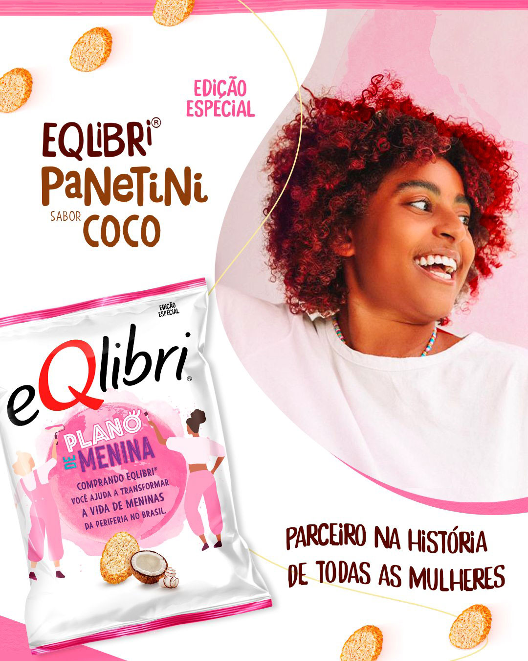 Em 2021, a eQlibri® lançou uma edição especial de Panetinis de coco em comemoração aos 3 anos como marca madrinha. Além do novo sabor e embalagem personalizada, 10% da venda do produto foi destinada ao Plano de Menina e a cada compartilhamento do lançamento feito no Instagram foi doado R$ 5 para o Instituto.